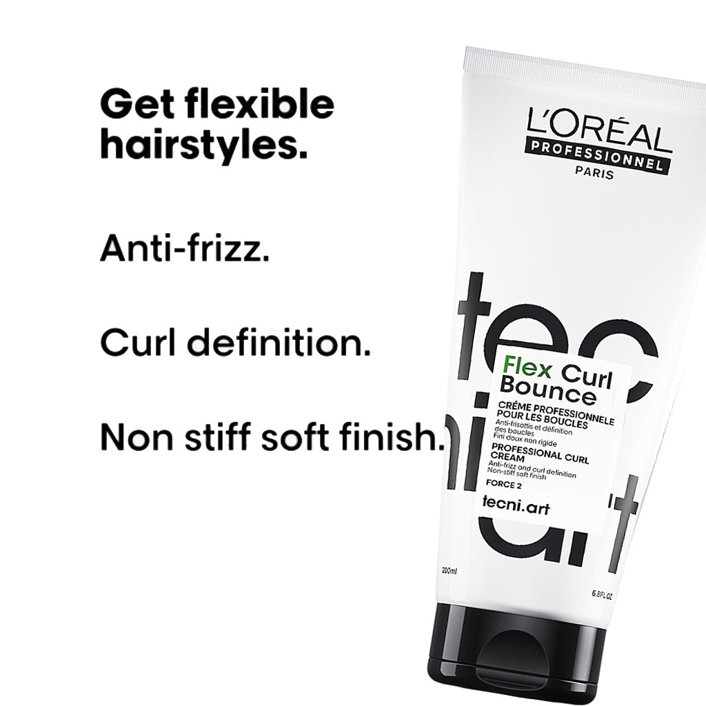 Bringing your wavy or curly hair under control will be made easier by the L’Oréal Professionnel Tecni.Art Flex Curl Bouncestyling product. It will accentuate your waves or curls, enhance their definition and texture and highlight the beauty of your hairstyle. It simplifies any further adjustments to your wavy or curly hair and allows you to shape it exactly to your liking. Your hair as well as individual waves will hold for a very long time in the desired shape and without undesirable frizzing.