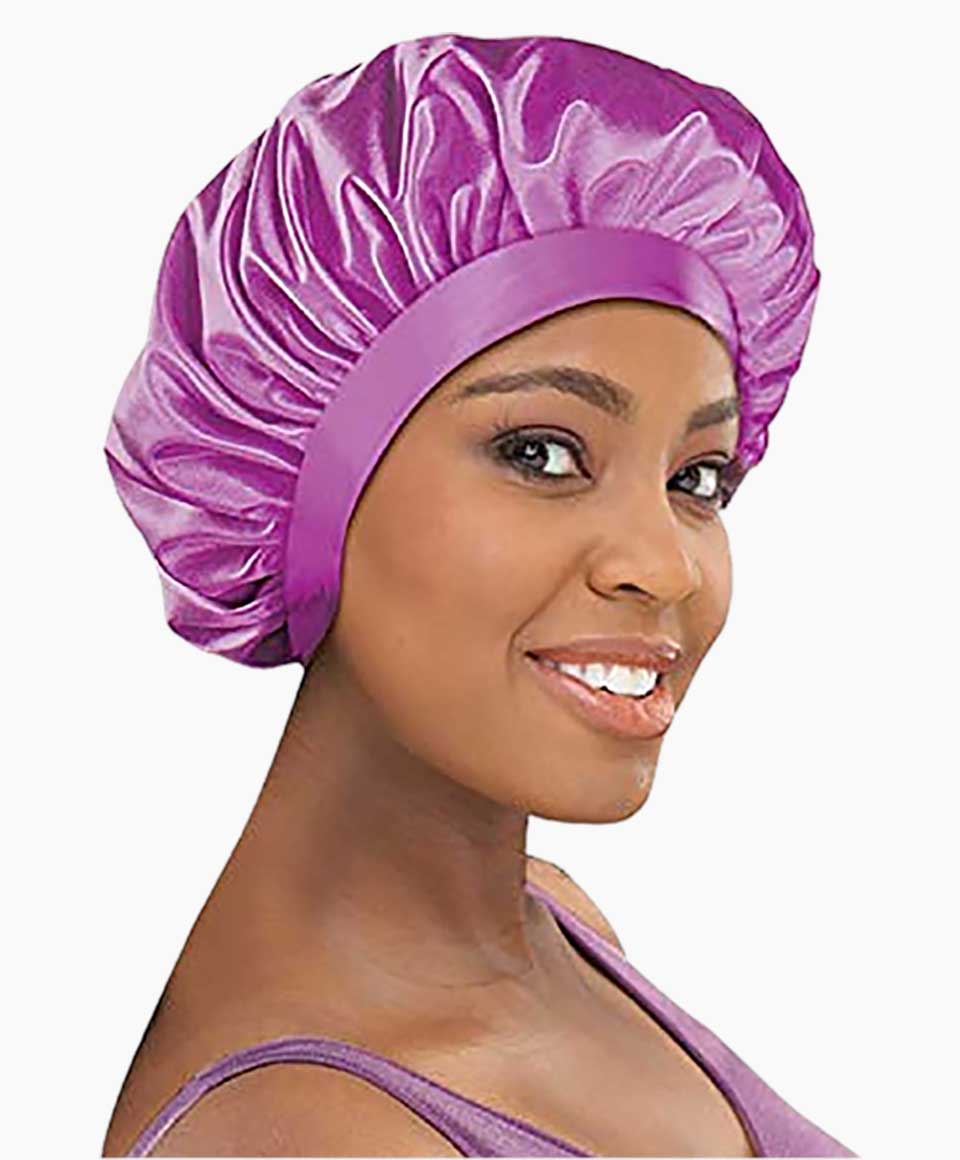 Stay On Satin Black Satin Edge Bonnet 9637 is for deep overnight conditioning that is simple and effective. This satin bonnet will make taking care of your tresses easy. Just tie it up and sleep your hair stresses away. This satin bonnet protects the hair from over drying and breakage and enhances any hot oil or deep conditioning treatment overnight. Easy and efficient.