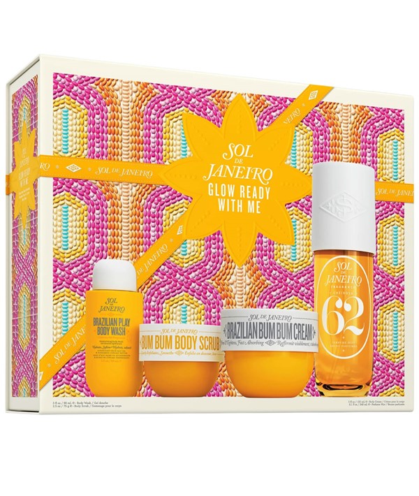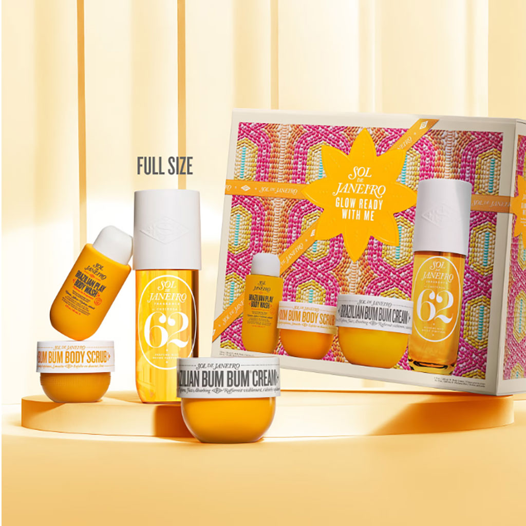 The Sol de Janeiro Glow Ready With Me Set unites four body care essentials, perfect for a head-to-toe ritual. Each product is infused with the brand's signature Cheirosa 62 fragrance, a warm, sunny blend of pistachio, salted caramel and vanilla, to leave skin feeling soft and smelling sublime.