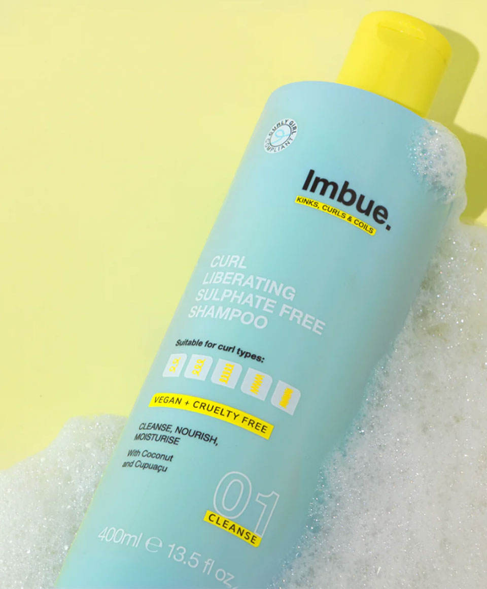 Imbue Curl Liberating Shampoo is a sulphate-free, hydrating and curl-enhancing formula designed to gently lift product build-up, dirt and grime without stripping strands of their juicy moisture. Crafted for all types of curls and coils, it delivers a gentle but effective cleanse, leaving your hair feeling soft, smooth and shiny. It also helps to separate your curls, giving them extra definition from wash day and beyond.