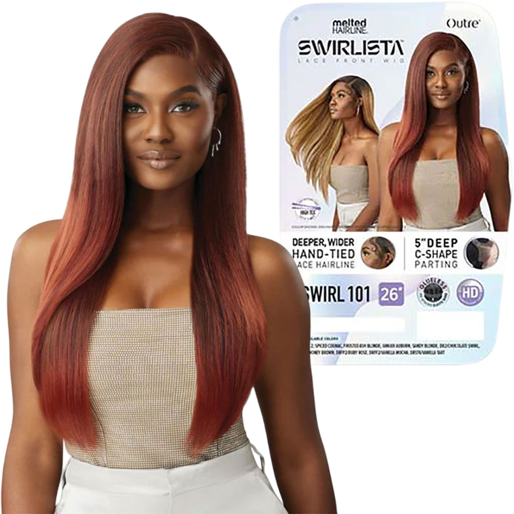 Outre Melted Hairline Swirlista features the latest technology in the wig game for seamless blending or "melting". It comes with a pre-attached wide elastic band for glueless installs and an ear-to-ear hand-tied HD lace, including a preset 5" deep lace C-parting, hairline and sideburns. All of which make it easier for your customers to "melt" the lace into their hairline.
