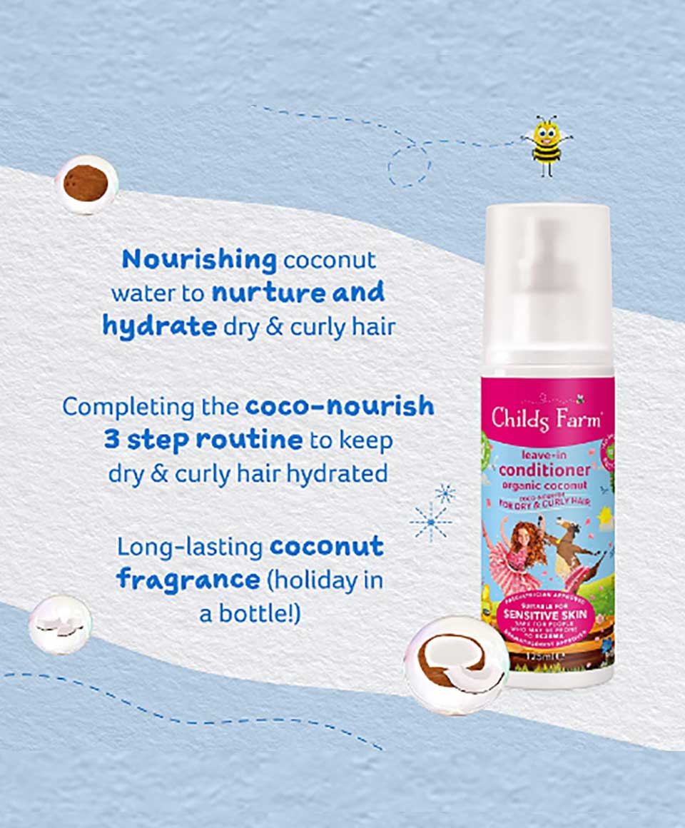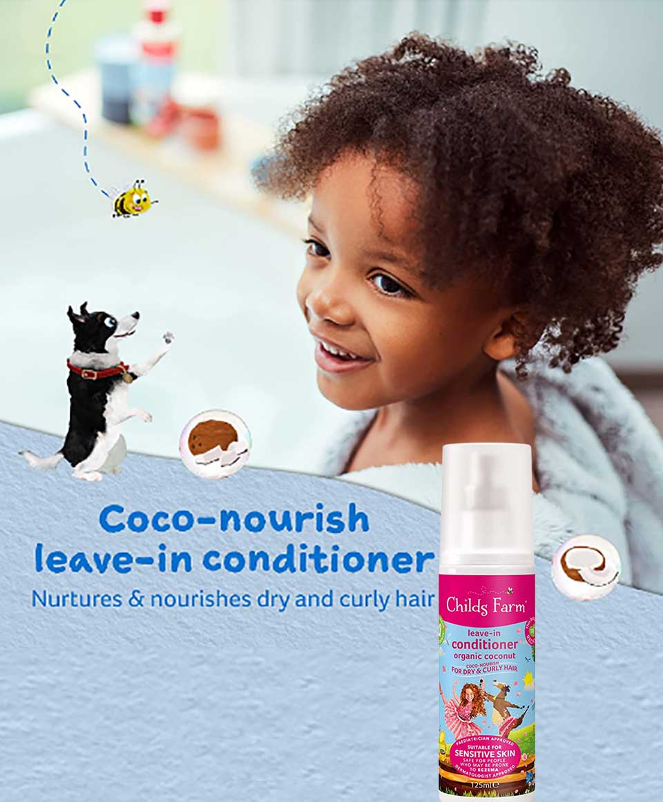 Childs Farm Leave In Conditioner with Organic Coconut sustainable hair care for luscious locks.