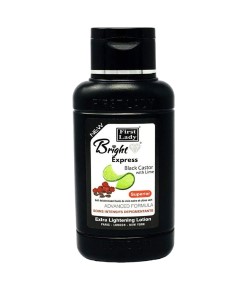 First Lady Bright Express Black Castor with Lime extra lightening body lotion lightens and evens the complexion. This superior lightening lotion is infused with Black Castor and Lime. Perfect for those suffering from hyper-pigmentation, dark spots and blemishes. Black Castor - helps reduce blemishes, pigmentation, acne, fights signs of aging, prevents and heals stretchmarks, improves inflamed skin, brightens and moisturises the skin. Lime - contains high vitamin C content, and antibacterial properties. Lime also prevents skin from wrinkling, and provides a brighter luminous and glowing skin tone. This lightening moisturiser is perfect for oily and dry skin.