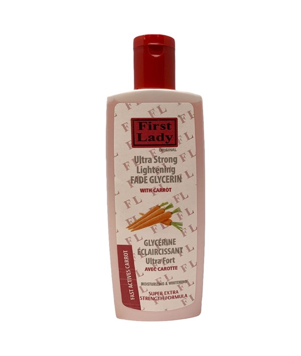 First Lady Carrot Skin Lightening Glycerin is ideal for dry skin, originates from vegetables, the light weight formula provides effective moisture retention. It excels at locking in moisture and promoting even, clear lighter and bright skin, making it the perfect solution for your skincare needs.