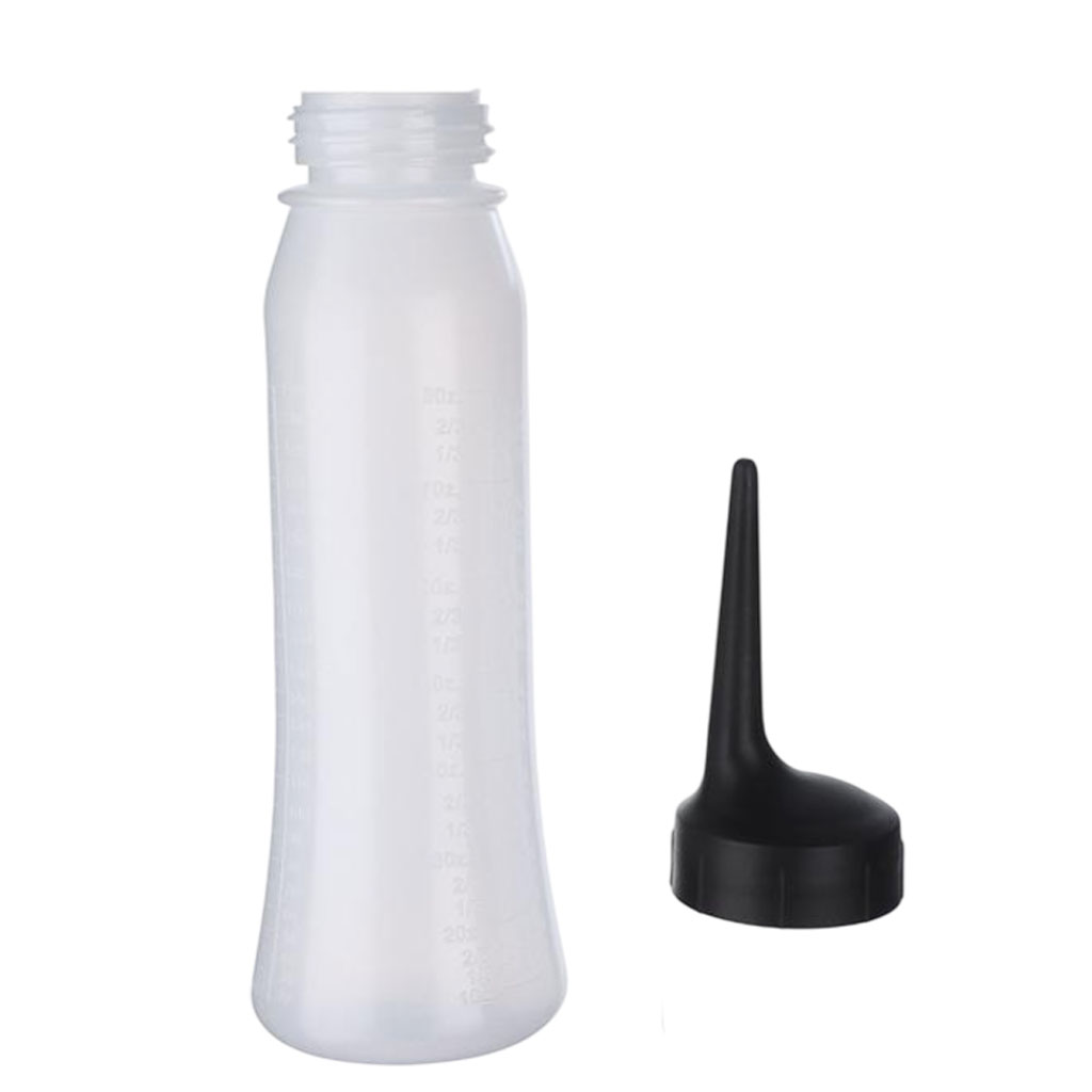 The bottle body with graduated scale, beautiful shape to provide convenience for your hair color. Empty Squeeze Bottles can be use for storing and dispensing many kinds of liquids including oils, lotion, hair dyes, cosmetics, paints .