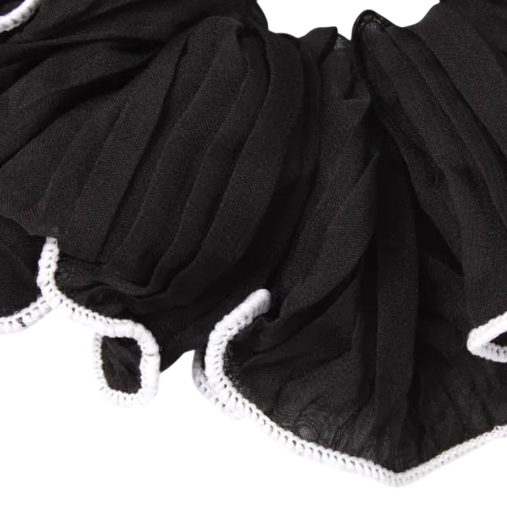 - Chiffon style pleasted fabric scrunchie in Black and Cream with contrasting edge.