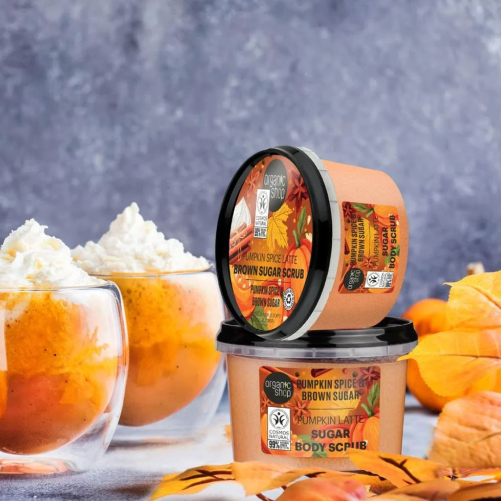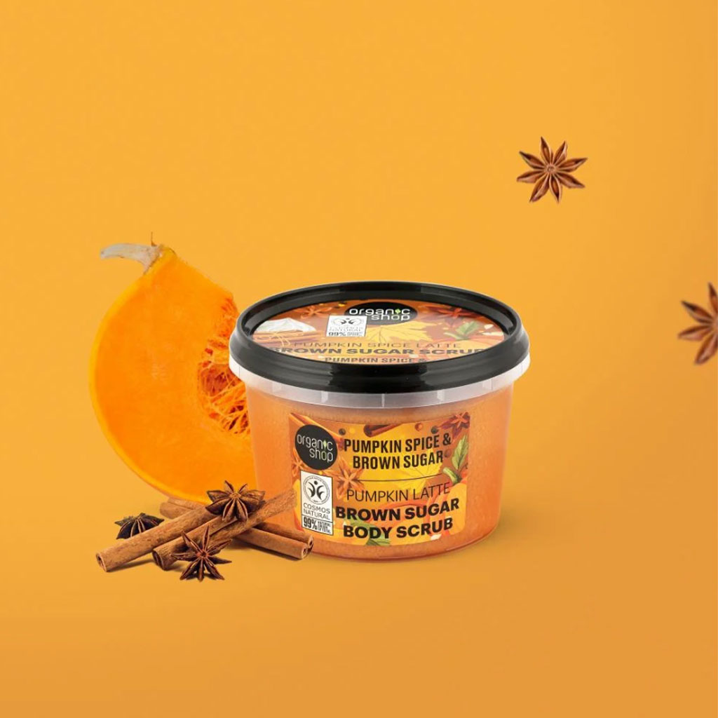 Body scrub "MOLIQUE LATTE". Enjoy autumn with this delicious and fragrant body scrub! Cinnamon and brown sugar soften and gently cleanse the skin, while organic pumpkin oil, rich in vitamins C and E, nourishes the skin, effectively rejuvenates and renews it.