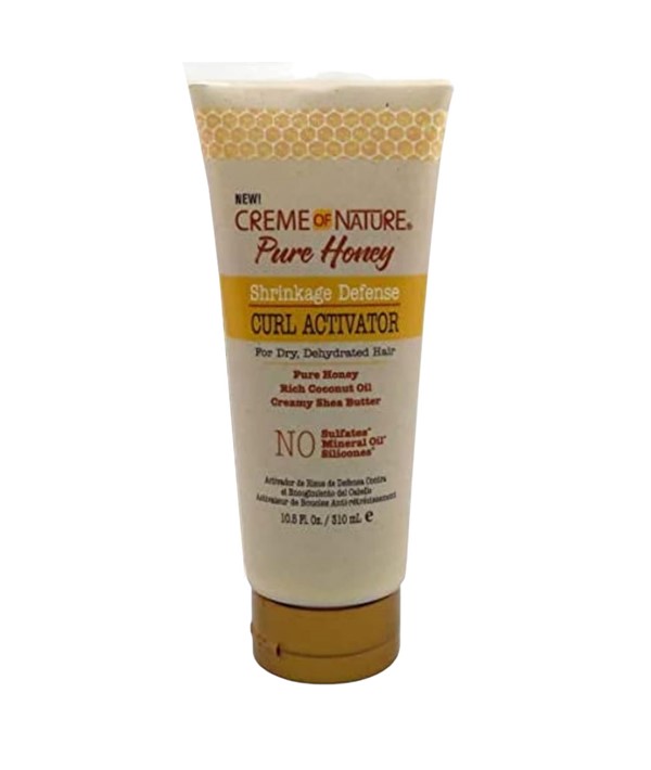 Pure Honey Lock In Moisture Shrinkage Defense Curl Activator , which Infused with a blend of Pure Honey, Certified Natural Coconut Oil & Shea Butter, our Shrinkage Defense Curl Activator defines and elongates curls and coils.