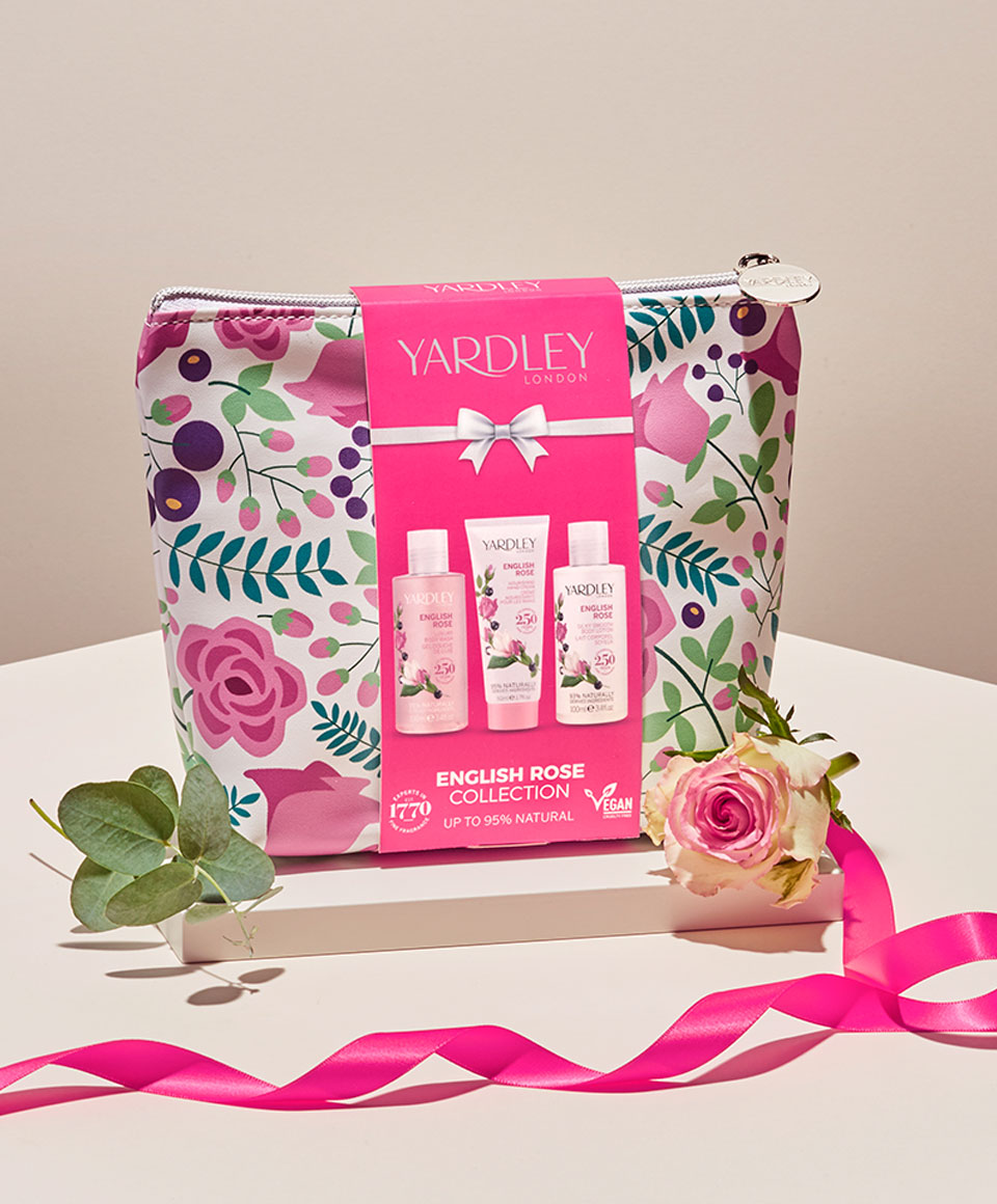 This gift set for her features a Luxury Body Wash, Silky Smooth Body Lotion and Hand Cream, all infused with Yardley London's English Rose fragrance. Contains up to 97% naturally derived ingredients. Paraben free. Cruelty free & suitable for vegans. Beautiful Gift Pouch.