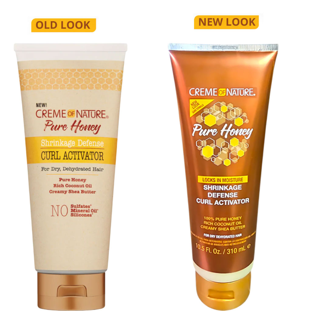 Pure Honey Lock In Moisture Shrinkage Defense Curl Activator , which Infused with a blend of Pure Honey, Certified Natural Coconut Oil & Shea Butter, our Shrinkage Defense Curl Activator defines and elongates curls and coils.