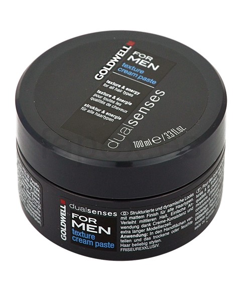 Goldwell Dualsenses For Men Texture Cream Paste is a medium hold, matte finish styling paste, especially for men. Great for creating texture in shorter styles, this professional hair care product lets you create structured looks with a matte finish and a medium hold factor. Easy to use, it has extra pliability for increased working time.