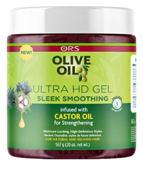 ORS Olive Oil Ultra HD Gel Sleek Smoothing is a moisture-locking wet gel infused with castor oil plus our Keratin complex to strengthen and promote healthy looking hair. Ultra HD Gel Sleek Smoothing transforms edges and dull hair into sculpted styles with extra firm hold and high-definition shine.