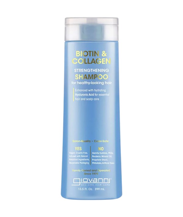 Giovanni Biotin & Collagen Strengthening Shampoo is the perfect way to start your hair care routine. This shampoo gently lathers and deeply cleanses while infusing each strand with essential hydration for frizz control. Enriched with Biotin and Collagen, it works to naturally strengthen and thicken hair, improving texture for a smoother, healthier look. With each use, your hair transforms, gaining volume and a silky finish. Experience fuller, more vibrant tresses with this nourishing formula that brings consistency, body, and shine to every strand. Healthy, beautiful hair starts right here.
