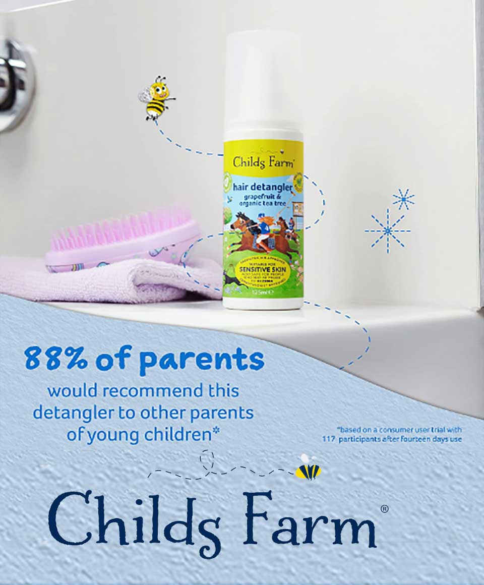 Childs Farm Hair Detangler with Grapefruit and Organic tea tree sustainable hair care for luscious locks.