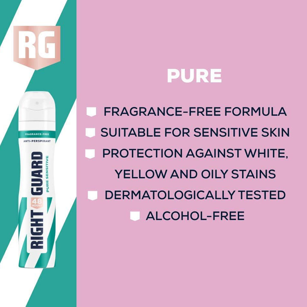 Right Guard Total Defence 5 combines the five essential benefits of an anti-perspirant into one. It fights perspiration, prevents odour, long-lasting freshness, adapts to your level of activity and leaves low residue. Delivers 30% more protection power and 30% more active ingredients delivered per second compared to Right Guard 3D.