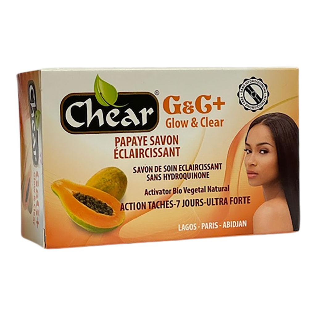Chear G and G Plus Glow And Clear Papaya Soap is formulated with natural Carica Papaya fruit oil. This soap naturally helps moisturise & exfoliate the skin, therefore giving a fairer & glowing complexion .