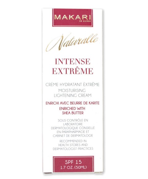 Makari Naturalle Intense Extreme Moisturising Cream with SPF 15 is enriched with shea butter. This cream moisturizes, while even toning and Clarifying your skin tone gradually.It helps reducing the appearance of discolorations, pigment marks and age spots with a targeted blend of vegeclairine and Shea Butter.
