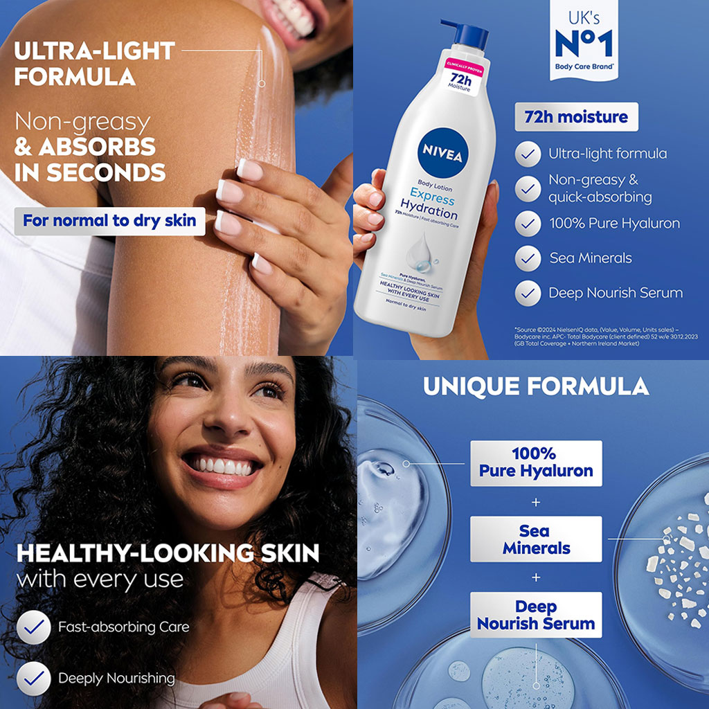 Nivea Express Hydration 72H Moisture Body Lotion Normal To Dry Skin