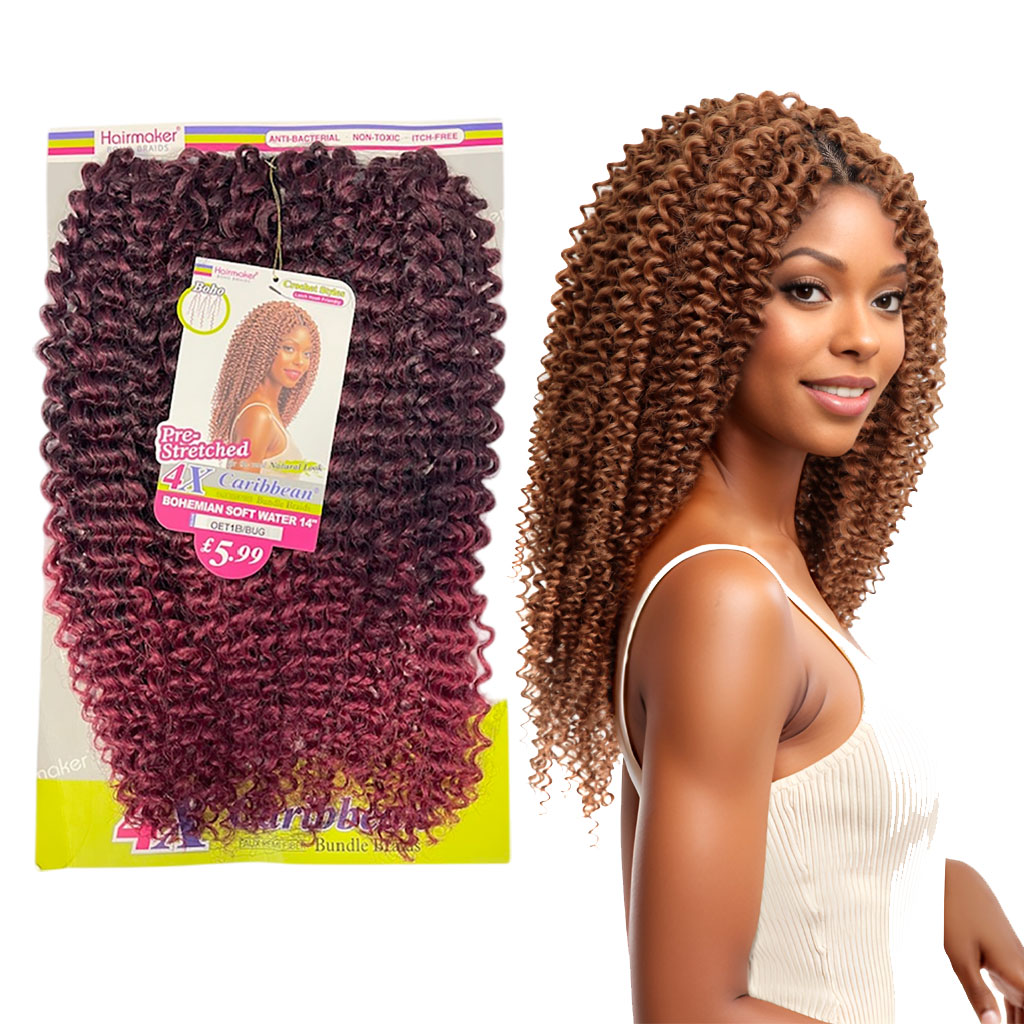 Boho Caribbean Pre Stretched Bohemian Soft Water Bundle Braids