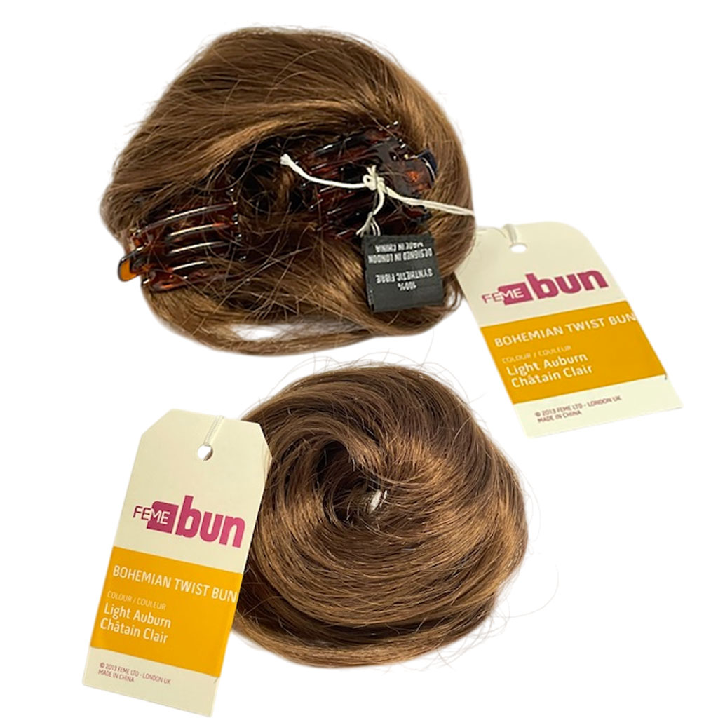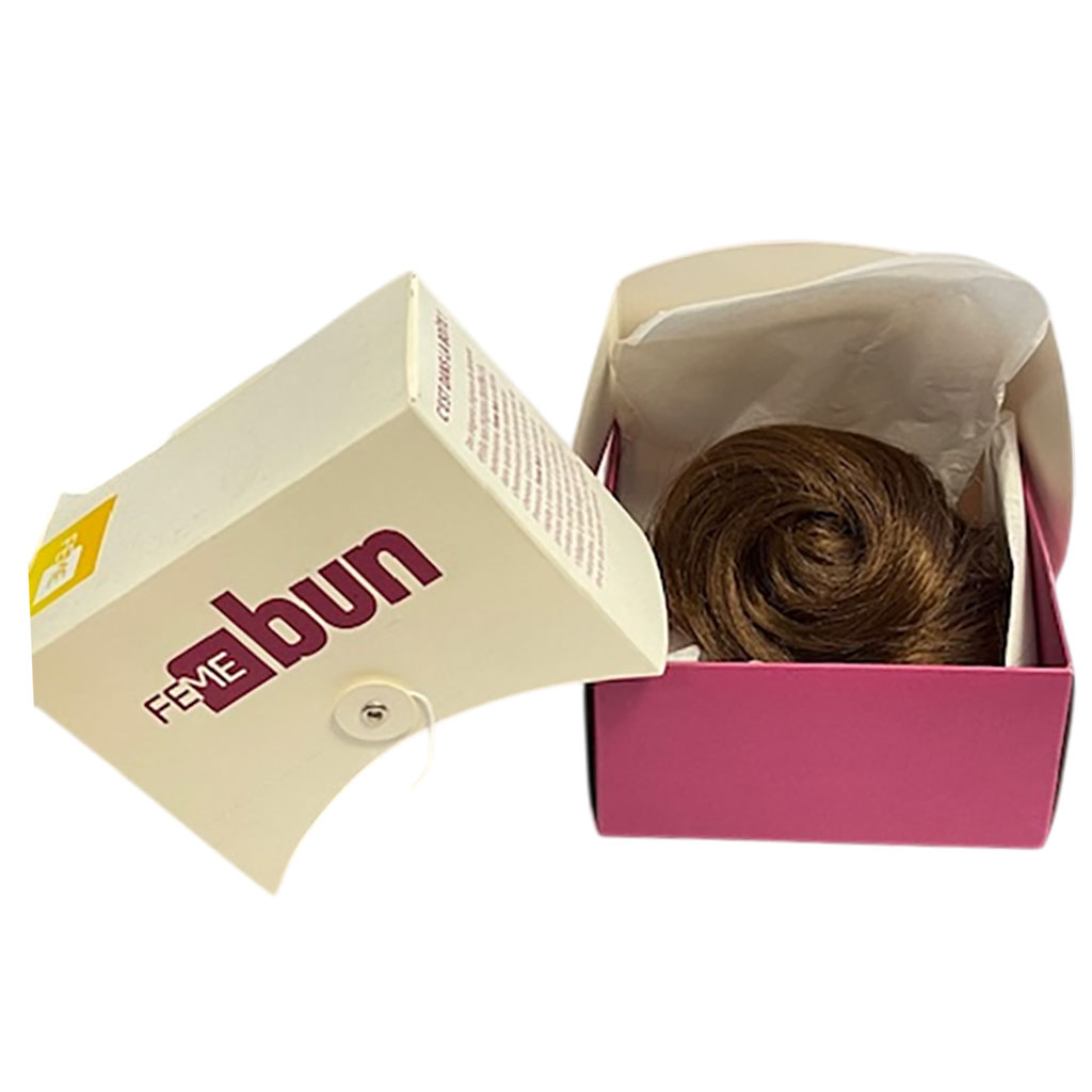 From elegant ballet buns to bohemian topknots, Feme bun comes in four contemporary styles that blend seamlessly with the customers own hair. Made with 100 percent Premium Fibre, Feme Bun is quick and easy to apply thanks to a special clip, drawstring or comb methods, each designed to suit the wearers natural hair texture and length. Result A beautiful bun in minutes. Packaged neatly and attractively in a box, Feme Bun is a standout, quirky and fun addition to your updo offer.
