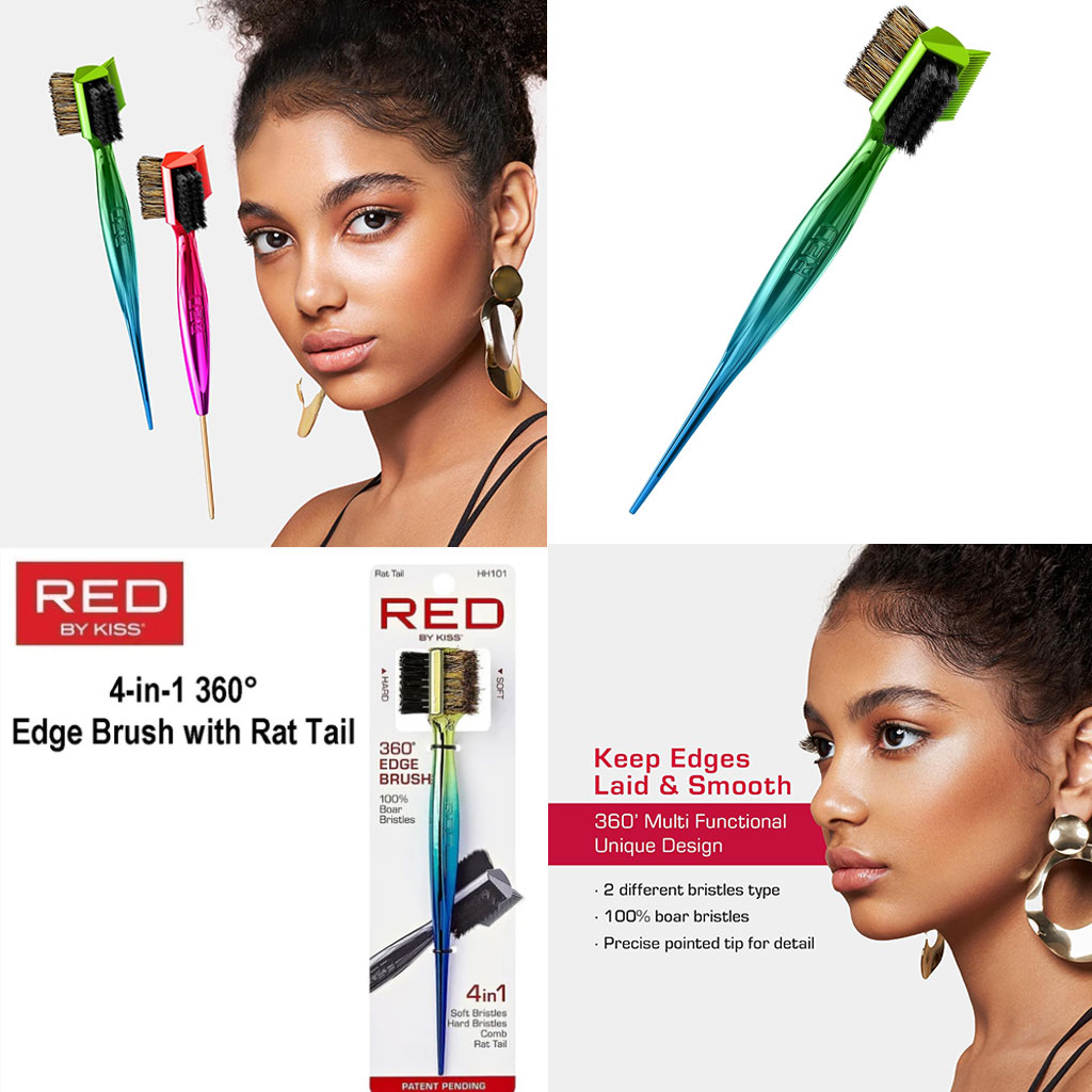 Red by Kiss 4-in-1 360° Edge Brush with Rat Tail (HH101) .