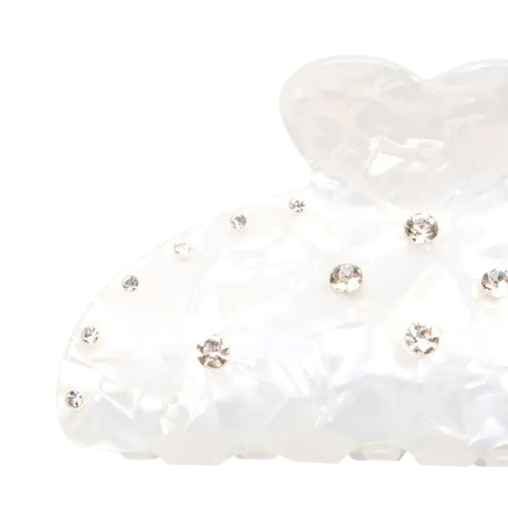 - Ivory pearlescent effect clamp with clear diamante stone detail.