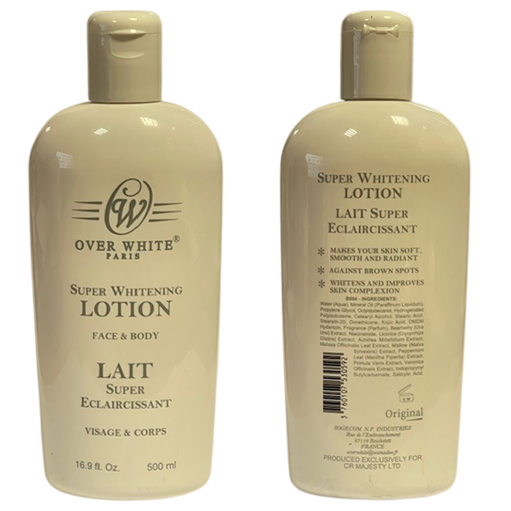 Over White Super Whitening Lotion for Face and Body makes your skin soft, smooth and radiant against brown spots. It whitens and improves skin complexion.