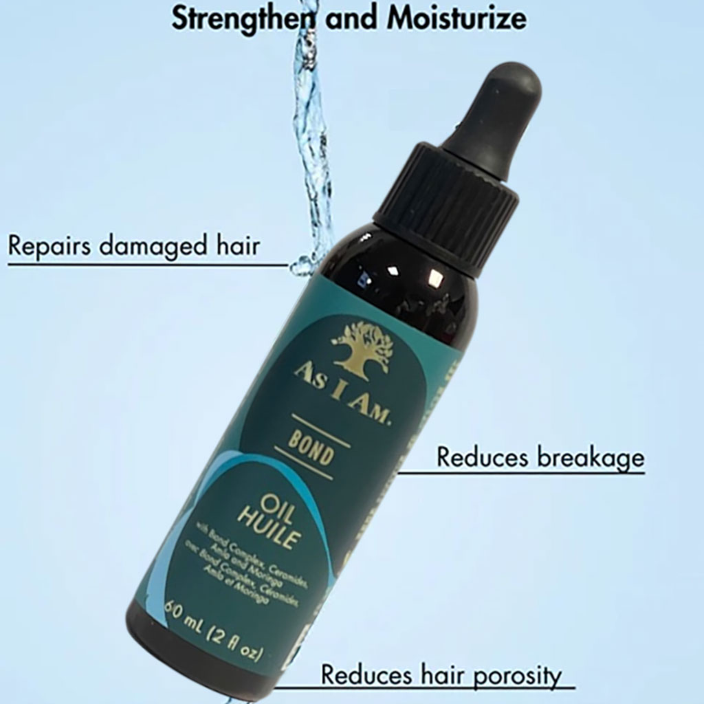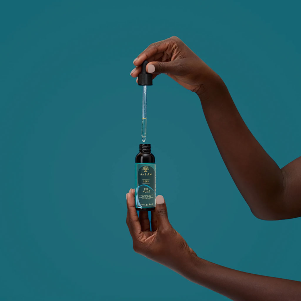 Apply 1-2 droppers of oil to the hair and leave on for at least 2-4 hours, or overnight for deeper nourishment. Follow with the As I Am Bond Shampoo for cleansing. For added shine and moisture, distribute 1-3 drops to the ends of the hair and leave in.