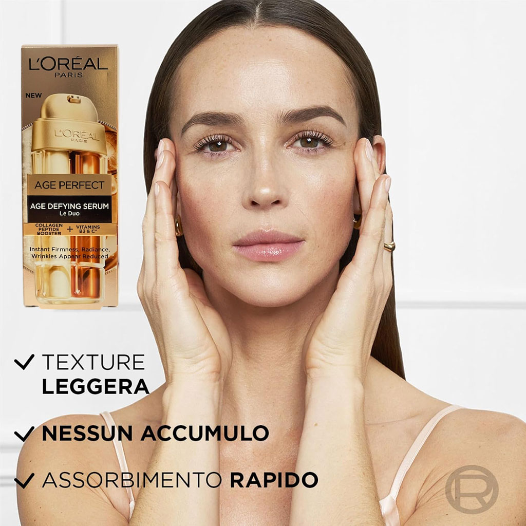 1 x L'Oréal Paris Anti-Aging Serum, for all skin types, Double action firming and brightening, soft and nourished skin, zero wrinkles, with collagen and vitamin. Age Perfect B3 e C Lead 30ml