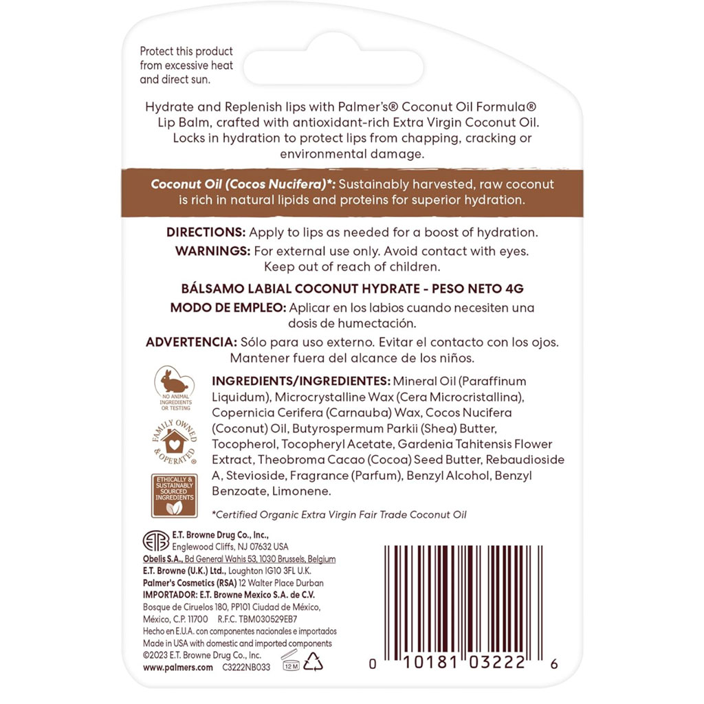 Palmers Coconut Oil Lip Balm is a decadently creamy lip balm that keeps lips hydrated all day long and protects against chapping, cracking and environmental damage from the sun or wind.