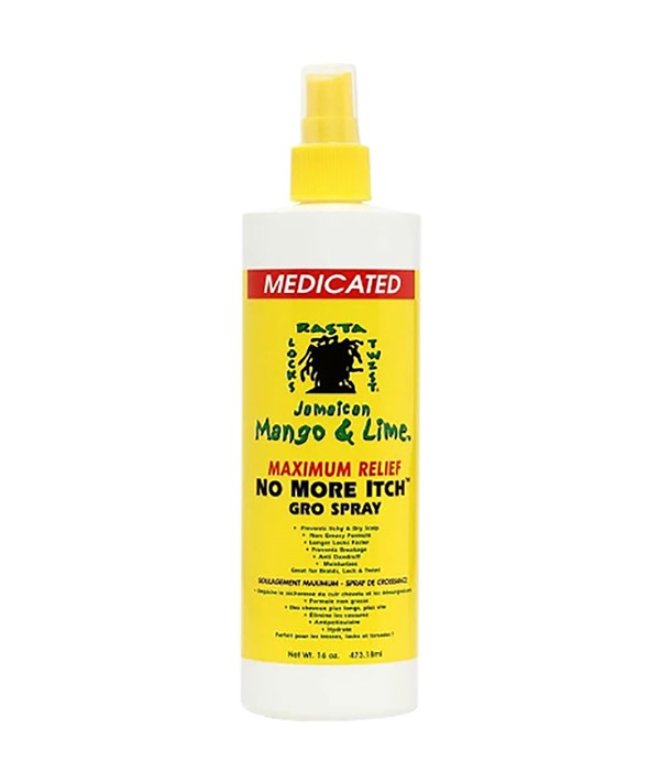 Jamaican Mango and Lime Maximum Relief Medicated No More Itch Gro Spray is a medicated blend of natural botanical extracts and minerals that heal excessive scalp irritation while preventing dandruff and dry scalp.