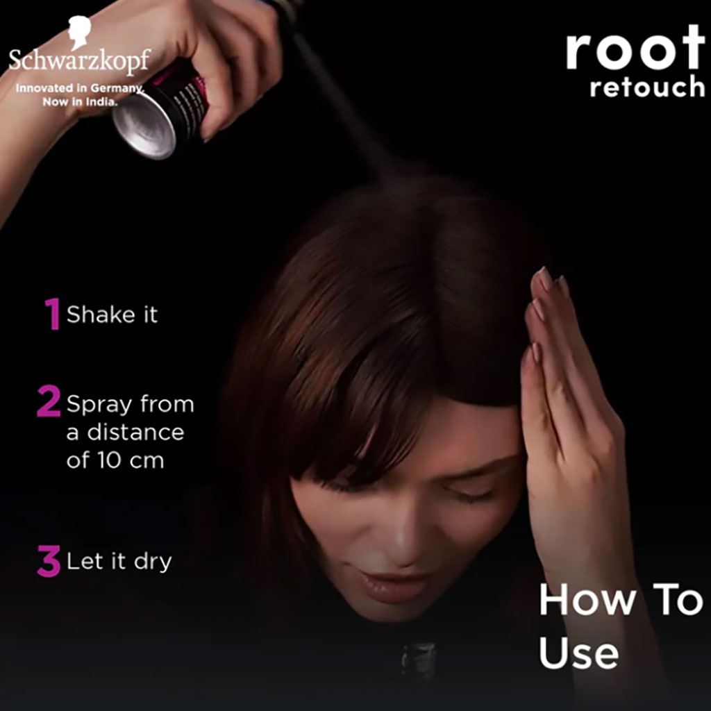 Root Retoucher: Temporary root cover spray. Microfine mineral cosmetic pigments instantly cover lighter and grey regrowth in a few seconds. Immediately drying and leaving an even colour result harmoniously blending into hair lengths. The precise spray applicator applies the product only where needed. Washes out after 1 shampoo. Reusable for up to 40 applications .
