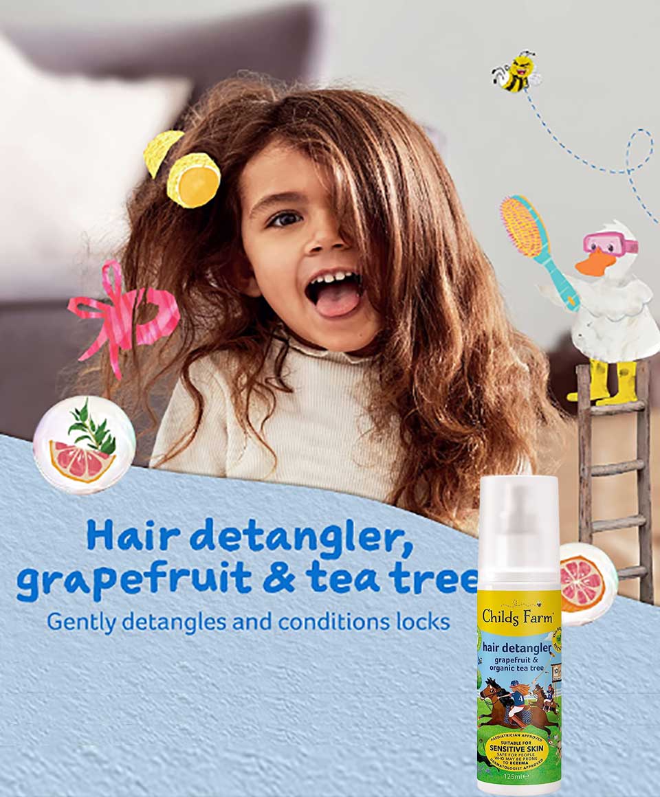 Childs Farm Hair Detangler with Grapefruit and Organic tea tree sustainable hair care for luscious locks.