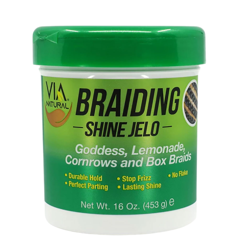 The VIA Natural Braiding Shine Jelo is your partner in braiding. It helps you take your braiding game to the next level! It is designed to coat, sleek and fuse textured hair together for the perfect Cornrows, Box Braids and more.