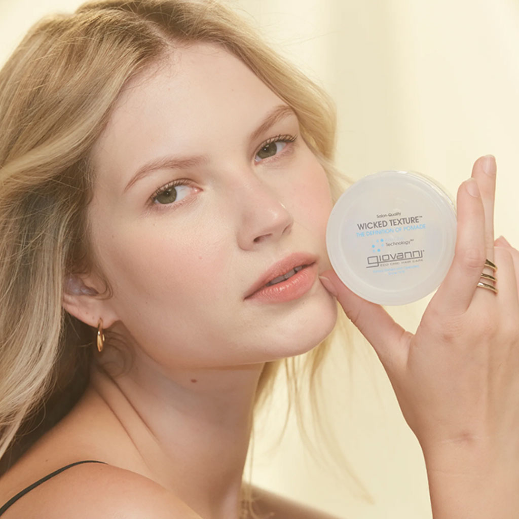 This Wicked Texture® pomade will not dull, strip color, or damage your hair. It’s color-safe, paraben-free, and cruelty-free. Look in the Ingredients tab for a listing of (*) organically produced ingredients that our vegan styling pomade contains. Explore the rest of our Eco Chic® Hair Care products for salon-quality formulas for all hair types.