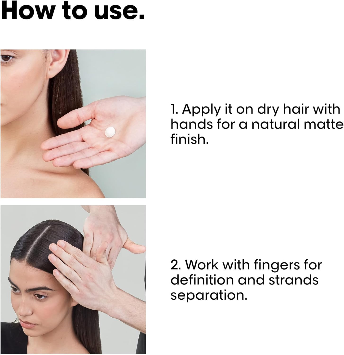 Apply it on dry hair with hands for a dishevelled matte finish. Work with fingers for definition and strands separation