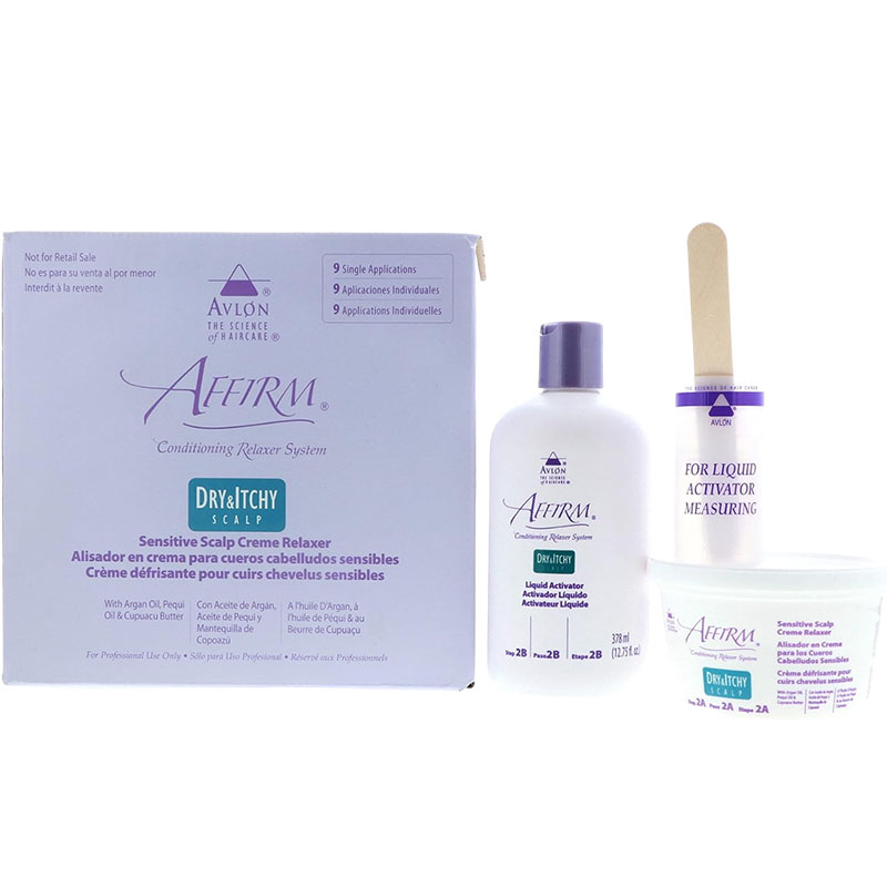 Affirm Dry and Itchy Relaxer System is the first relaxer system designed to reduce to dry and itchy scalp conditions and visible dandruff even after initial use. The Affirm Dry and Itchy Relaxer System contain kerotolytic agents which are proven to loosen and break up dandruff flakes along with their properties that soothen and moisturize the scalp providing less itchy discomfort. To complete this system and to achieve maximum performance you will also need the following Affirm and Kera Care Dry and Itchy Scalp Products.