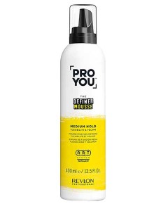 Revlon Pro You The Definer Medium Hold Mousse provides flexible finish and hold, adding shine and volume for lasting control and definition.