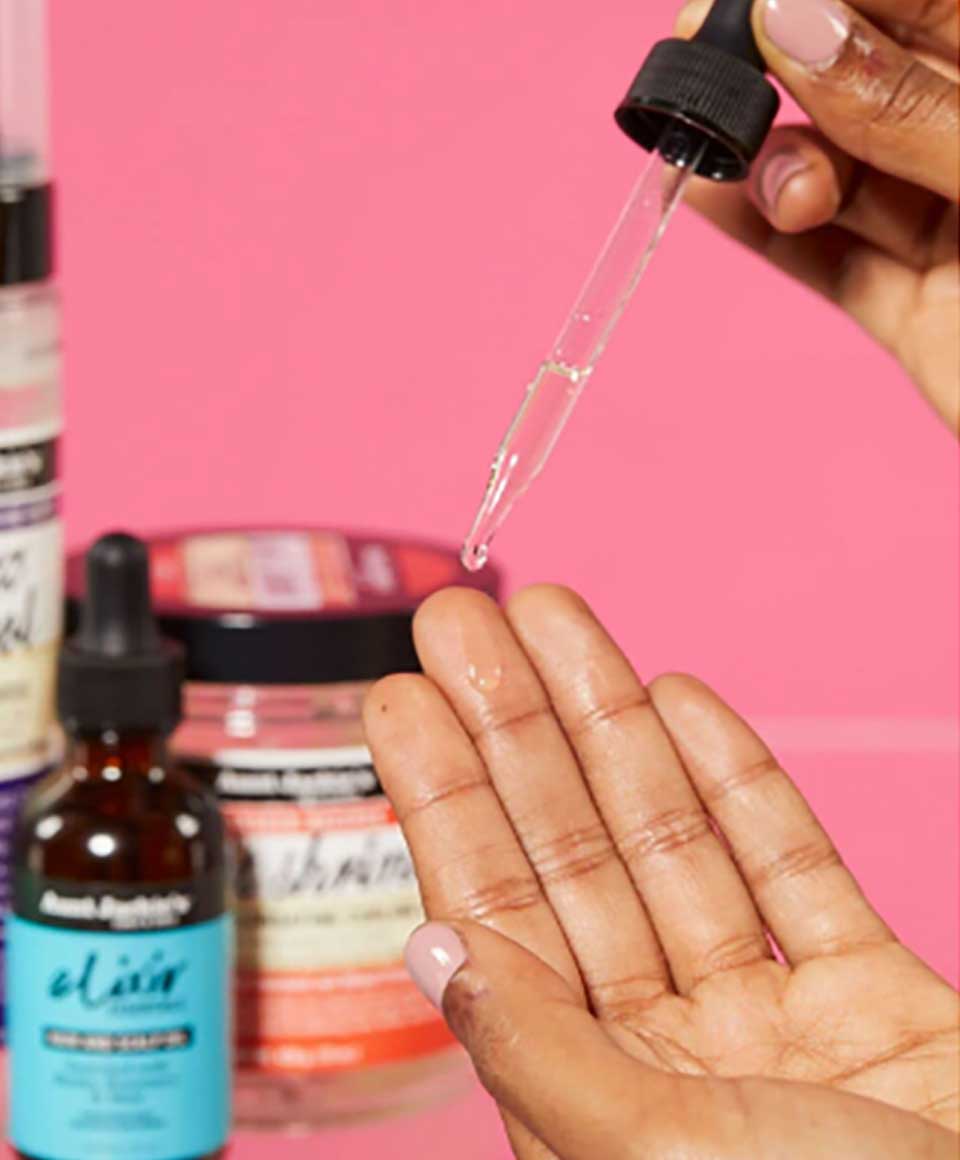 Aunt Jackie’s Curls and Coils Elixir Essentials is a hair and scalp oil infused with premium natural oils to address your top hair challenges. Formulated with special ingredients such as Biotin, Rosemary and Mint to support hair growth, nourish and thicken hair strands, reduce shedding, help relieve itchy scalp to improve hair and scalp health. This lightweight oil offers a cooling sensation to help soothe the scalp and provide the essential care your hair desires.