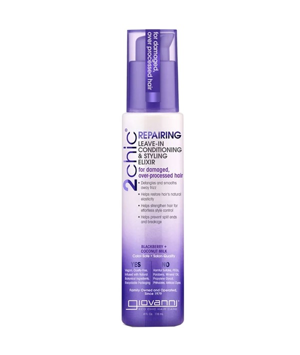Giovanni 2chic Repairing Leave-In Conditioning & Styling Elixir is a penetrating 2-in-1 treatment and styling serum that shields hair from the elements. Made with ripened Blackberries and the sweet nectar of Coconut Milk, it leaves hair with the strongest cross of nutrition and replenishment. No more dry or damaged hair!.