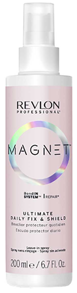 Magnet Repair Ultimate Daily Fix And Shield it with a lightweight screen for effective daily protection against external aggressors. It challenges the effects of external aggressors, pollution and UV radiation. Revlon Magnet Revlon Magnet contains a BondIN system that prevents, protects, rebonds and repairs hair offering a 360 degree protective shield against external aggressors.