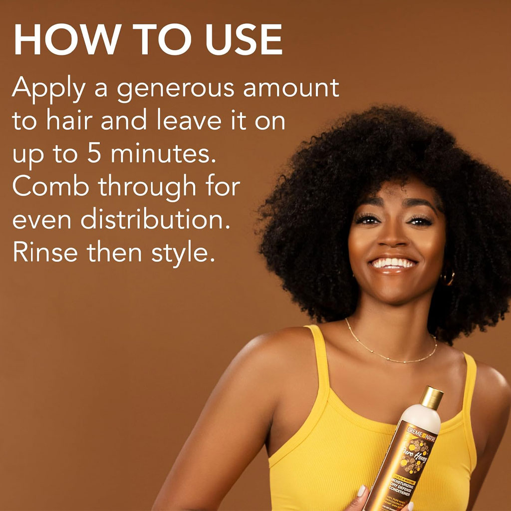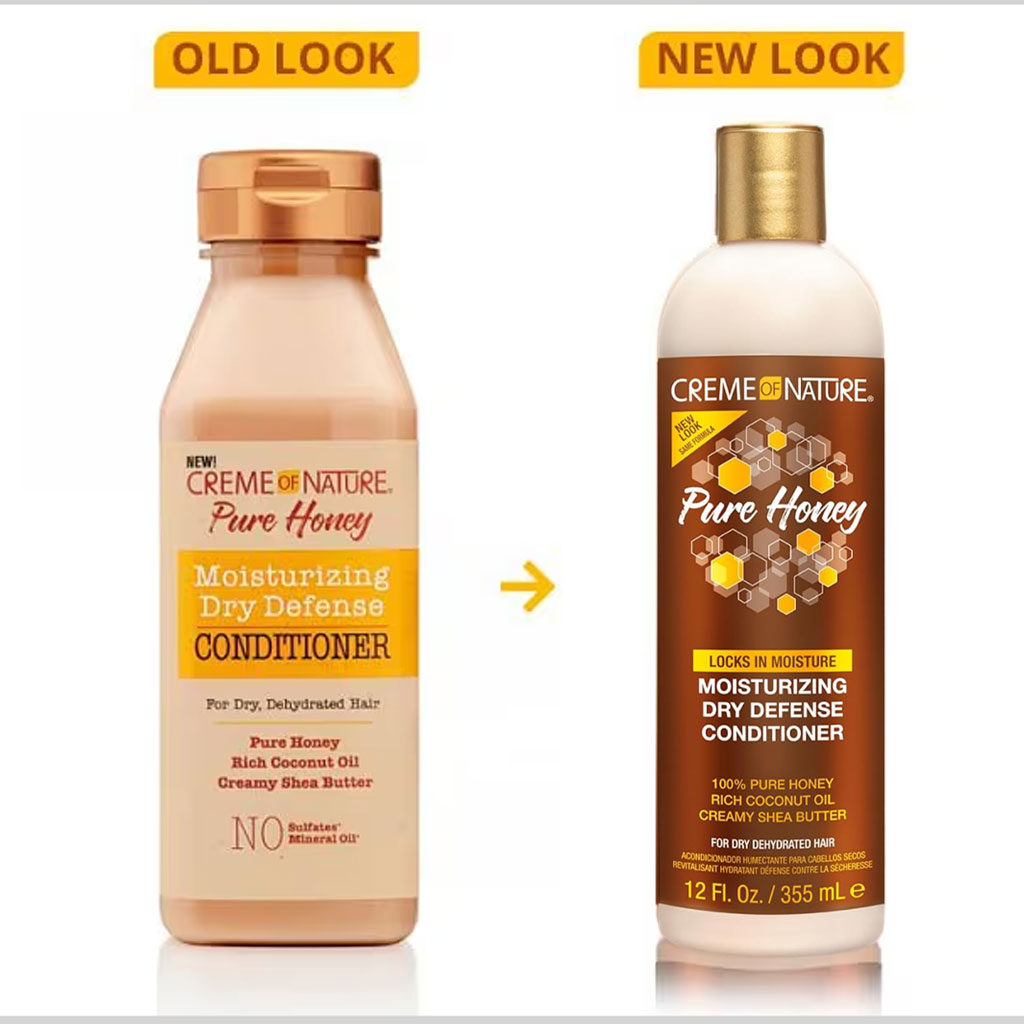 Creme Of Nature Pure Honey Moisturizing Dry Defense Conditioner is infused with a blend of Pure Honey, Certified Natural Coconut Oil and Shea Butter. Controls Frizz and Untangles.No Sulfates, No Mineral Oil.Smooths and Softens.