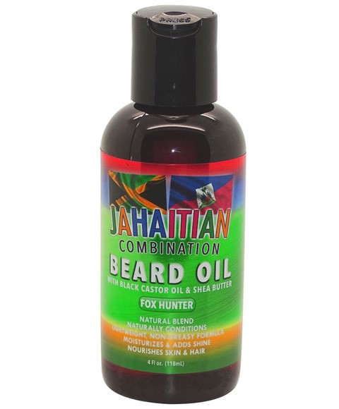 Jahaitian Beard Oil Fox Hunter with black castor oil and shea butter. Naturally blend, natural conditions, nongreasy formula and nourishes skin and hair.