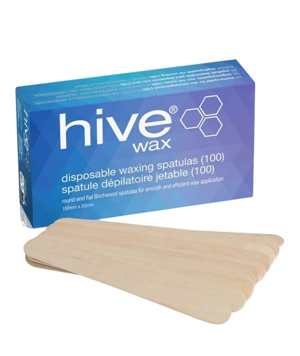 Hive Disposable Waxing Spatulas. A High Grade Rounded end Spatulas are made from quality Birch and Beech wood. Measuring 6' long making it easier to apply wax to your skin (with outgetting sticky fingers), also made extra smooth for a more efficient wax application.