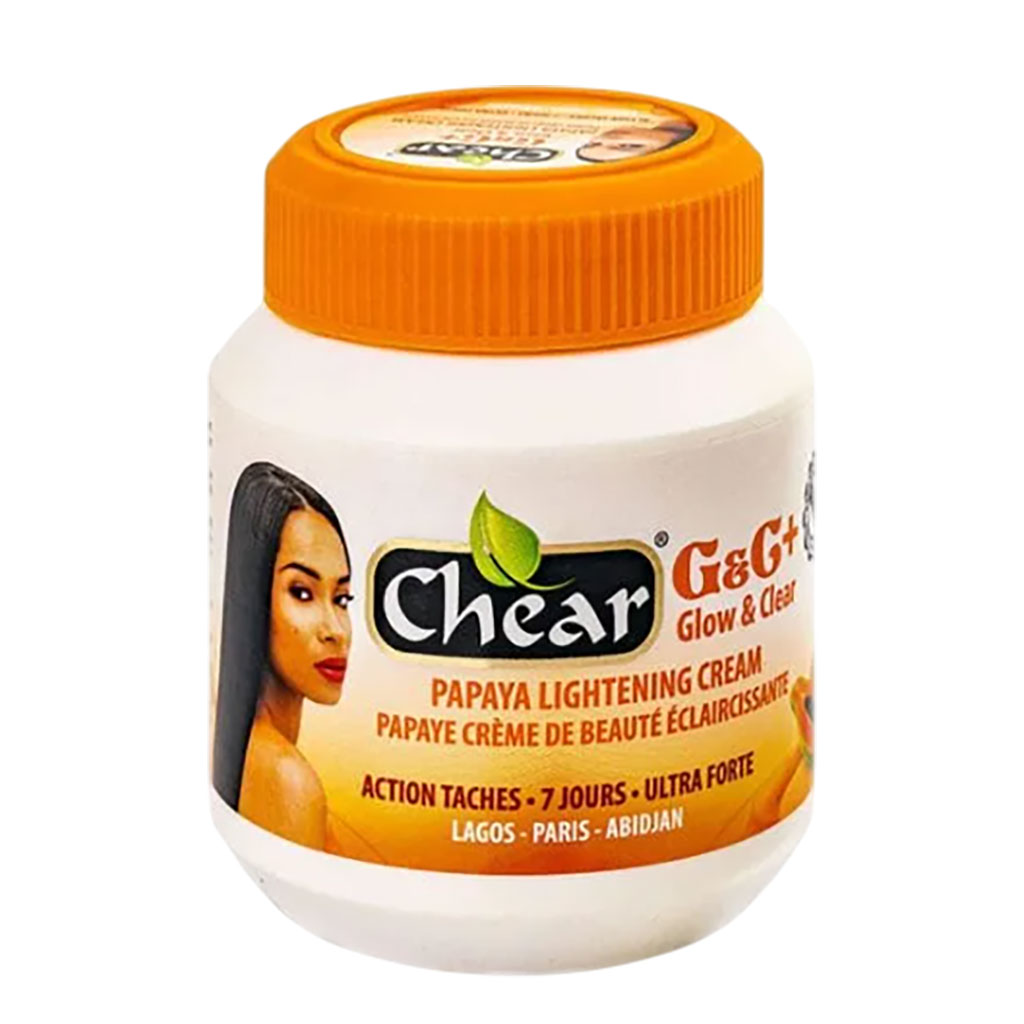 Chear G and G Glow And Clear Papaya Lightening cream is rich with extracts of Papaya which lightens your skin. It contains Vitamin E Acetate which when applied daily all over the body makes your skin silky soft. It moisturises, nourishes and gives a glow to the skin.