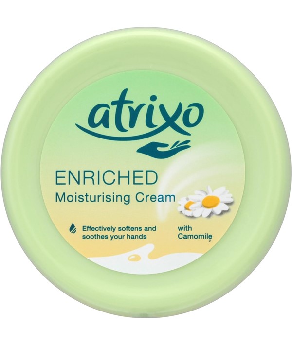 Atrixo Enriched Moisturising Cream, Effectively softens and soothes your hands. This Cream is ideal for taut, dry skin. It effectively soothes and softens your hands and moisturisers skin very well. Ideal for Formulated with natural camomile to soothe the skin.