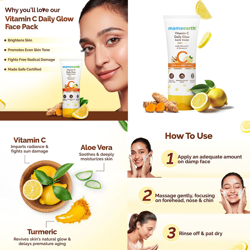 Cleansing is often the first step in a skincare routine to remove surface-level impurities. Mamaearth Vitamin C Face Wash contains ingredients like Vitamin C and Turmeric, which are commonly found in skincare products. This formula is suitable for regular use and designed for various skin types. The product is dermatologically tested and free from parabens, mineral oil, and added dyes.