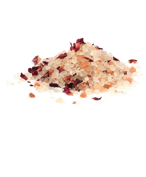A combination of Natural Himalayan Pink Rock Salt and Dry Rose Flower Petals.